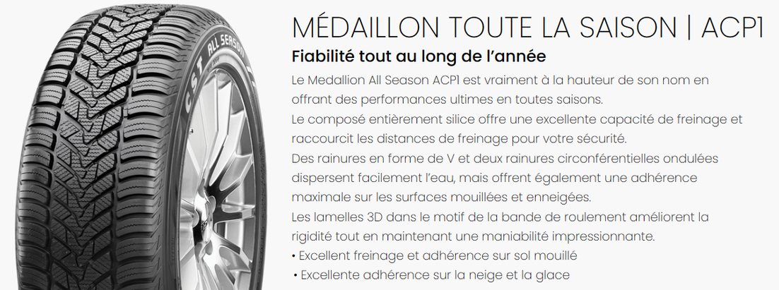 Le Pneu CST Medallion 4 Saisons, est le meilleur dans toutes les conditions.